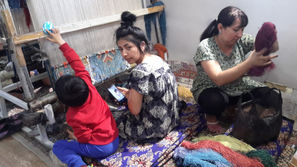 Puis notre visite nous mène vers des galeries commerciales. Rien à voir avec ce que nous connaissons en Occident. Ici, sous des voûtes séculaires, des boutiques se dressent dans d’anciennes cellules, dans des renfoncements, des recoins, et regorgent de tapis, soieries multicolores, vêtements bariolés au son d’instruments anciens. Tout est là pour appâter les touristes qui sont au rendez-vous. C’est presque trop : trop de marchandises, trop de tout, mais néanmoins quelle beauté architecturale, et quelle richesse de couleurs. Nous nous arrêtons dans un atelier de fabrication de tapis : kilims, tapis persans… de qualités diverses. Tout dépend du nombre de nœuds au centimètre carré. Les prix sont en conséquence : de 100 euros à 250 000 euros pour un tapis (soi-disant) volant ! Nous entrons ensuite dans un centre de fabrication de bijoux, de vases et de couteaux : Toki Zargarom ; le dôme suivant abrite Toki-Tel-parkh-Fourochon (un chapelier). En sortant nous découvrons la Médersa Abdul Aziz Khan (17ème siècle) et en face celle de Ulug- Beg qui date du 15ème siècle. L’une parfaitement restaurée, l’autre en cours de restauration, mais dans les deux cas, sublimes.