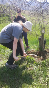 Pendant ce temps, le reste du groupe se rend dans un verger de pommiers appartenant au père de Nozim. Armés de pelles, les élèves vont bêcher autour de tous les arbres pour aérer la terre…